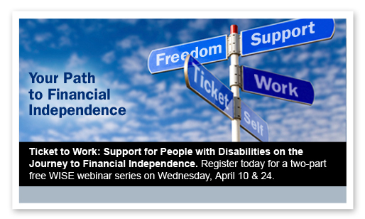 Register online at www.choosework.net/wise or call 1-866-968-7842 (V) or 1-866-833-2967 (TTY). Immediately following this webinar, join us for our Facebook Question and Answer Session at www.facebook.com/choosework and receive expert answers to your questions about Ticket to Work, Social Security work incentives, and your employment options. You will receive a registration confirmation message with instructions on how to log in to the webinar. Please be sure to check your spam folder. Registration information will also be available online at www.choosework.net/wise the day of the webinar. Email us at support@chooseworkttw.net or call 1-866-968-7842 (V) or 1-866-833-2967 (TTY). |