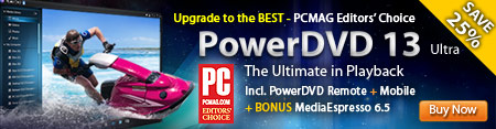 - PowerDVD 13 Receives Editors' Choice Award - The ultimate media player for Blu-ray, 3D video & HD movies has been rated Excellent by PCMag with 4.5 Stars!