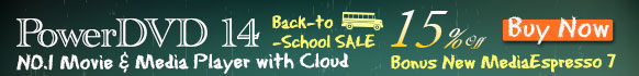 Save 15%! Get the No. 1 movie & media player with the brand new HEVC/H.265 format support, incl. 2 mobile apps & 10GB FREE space via CyberLink Cloud Service. BONUS NEW MediaEspresso 7.